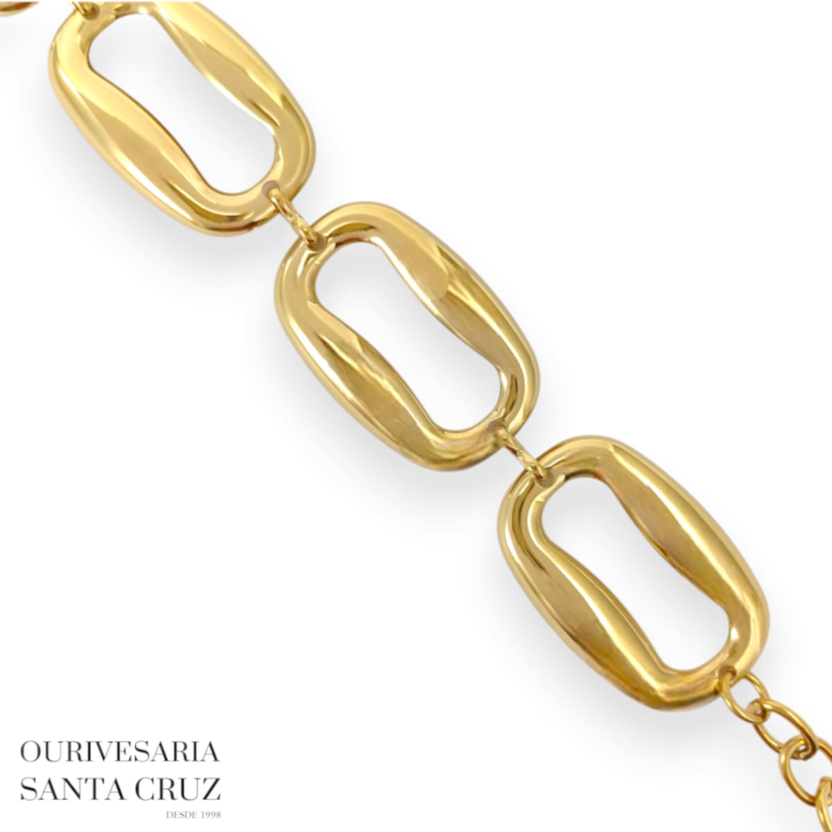 Pulseira de Aço Dourado Elos Retangulares