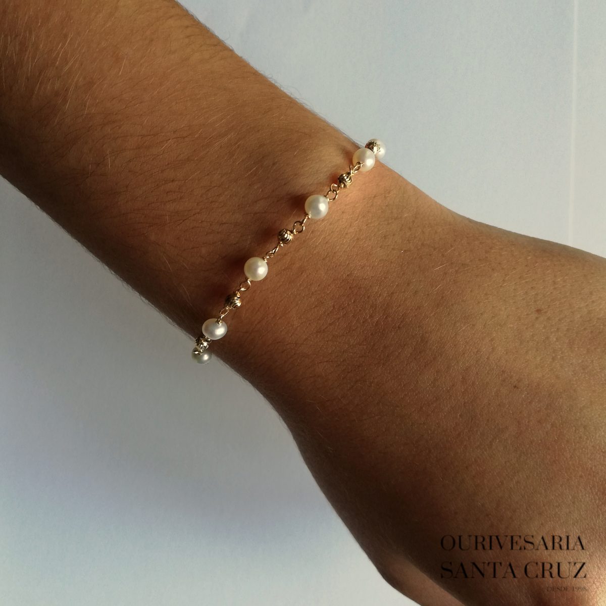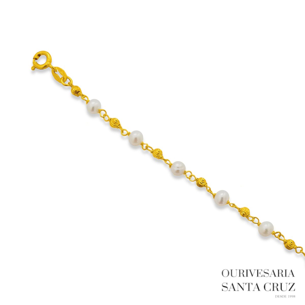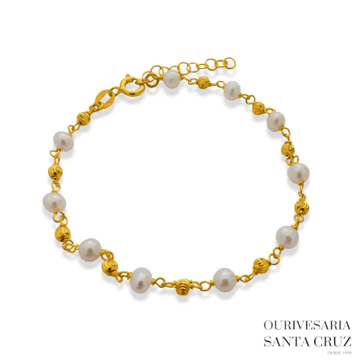 Pulseira de Prata 925 Dourada com Pérolas e Contas