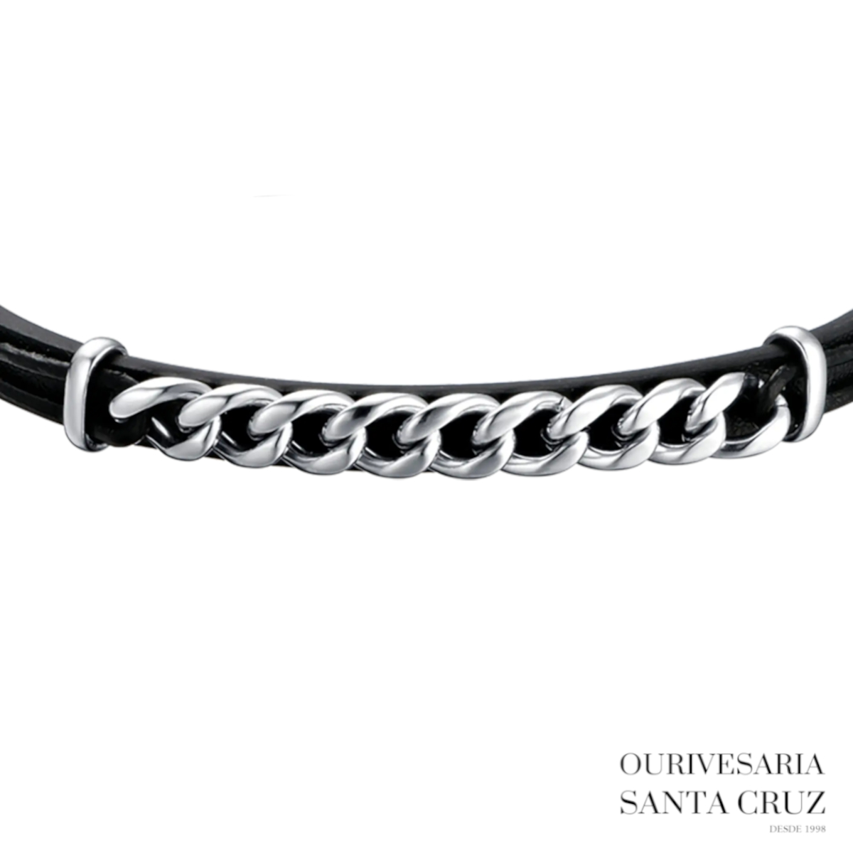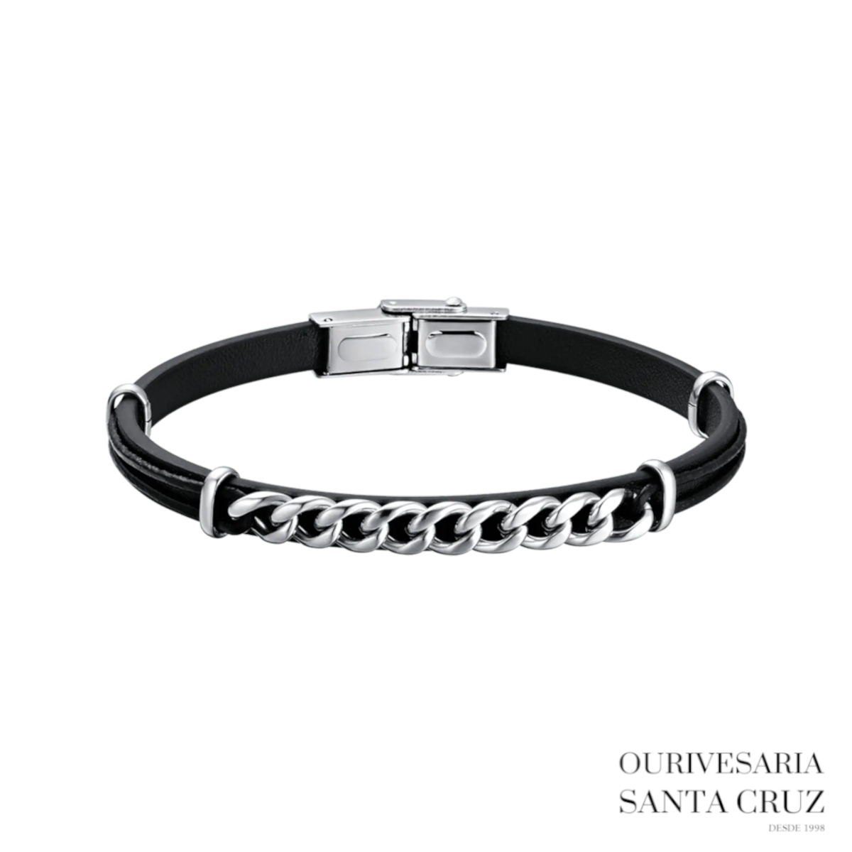 LUCA BARRA Pulseira de Couro Preto e Aço